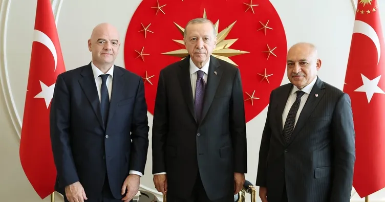 Öte yandan görüşmede FIFA Başkanı Gianni Infantino, Cumhurbaşkanı Erdoğan'a forma ve kaptanlık pazubandı hediye etti.