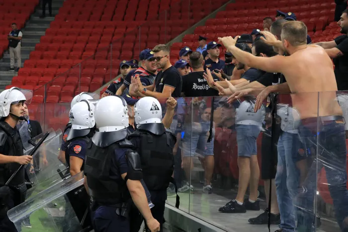 Yapılan uyarılar, tribünlere Arnavutça ve Türkçe anonsların ardından hakemler orta sahaya yöneldi. Karşılaşma, olayların yatışmasının ardından hakem heyeti ve oyuncuların sahaya dönmesiyle yaklaşık 15 dakika gecikmeli başladı.