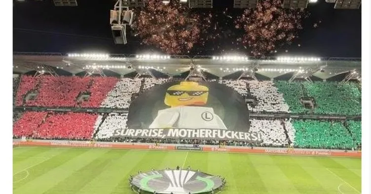Legia Varşova tribünlerinde daha sonra ise sürpriz yaparak küfür içeren bir pankart açtı.