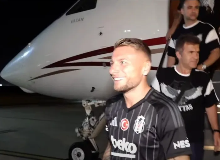 Siyah beyazlı takımın görüşmelere başladığı İtalyan golcü, uçakta ilk Kartal pozunu verdi. Beşiktaş İkinci Başkanı Hüseyin Yücel de Immobile'nin yanında yer aldı.
