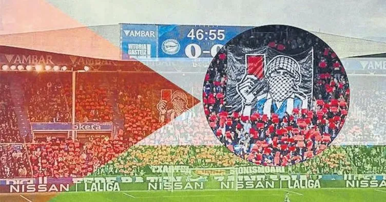 İsrail'in Filistin'e karşı uyguladığı soykırıma tepkiler çığ gibi büyürken bir yenisi daha eklendi. La Liga ekiplerinden Alaves'in taraftarı, Espanyol ile oynanan karşılaşmada İsrail'e kırmızı kart gösterdi. Yaptıkları koreografideFilistin bayrağıaçarak ellerindetuttukları kırmızıkartonlarla İsrail'ekin kustu. Statta tribünlerinbir bölümüde tamamenkırmızıya büründü. Futbolseverler, tribünlerde attıkları sloganlarda İsrail'in uluslararası futbol organizasyonlarından men edilmesi çağrısında bulundu. Geçen hafta da Osasunaseyircisi, Real Madrid'i konukettikleri karşılaşmada İsrail'eaynı tepkiyi göstermişti.