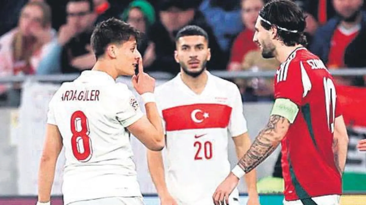 ARDA Güler ile Macaristan kaptanı Dominik Szoboszlai arasında yaşanan maç içindeki tartışmanın ardından Arda Güler 'sus' işareti yaparak rakibine müdahale etmişti. Liverpoollu oyuncu da boş durmadı ve dün yanıt verdi, ardından da Arda tekrar devreye girdi. Bir Macar sosyal medya hesabından paylaşılan ve milli oyuncumuzun 'sus' dediği fotoğrafa yanıt veren Szoboszlai, milli yıldızın Real Madrid'de az süre aldığına vurgu yaparak oynadığı toplam dakika olan '1088' yazdı. Sonrasında ise Arda Güler "Bu adam şaka gibi. 6 gol seni susturmaya yetmedi mi?" diyerek yanıtını verdi.