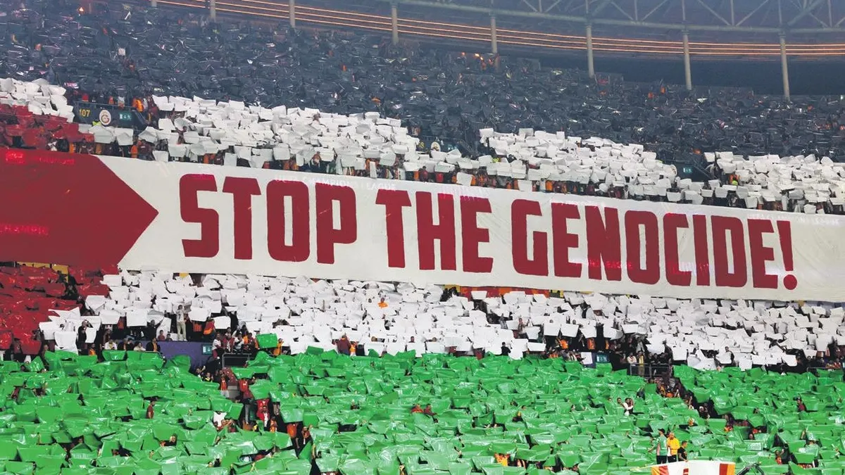 "Stop the Genocide" (soykırımı durdurun) yazısıyla Avrupa spor kamuoyunun dikkatini çekti ve İsrail aleyhine tempo tuttu.