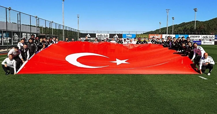 Beşiktaşlı futbolcular, dünkü antrenman öncesi Cumhuriyet'in 102. yıl dönümünü kutladı.