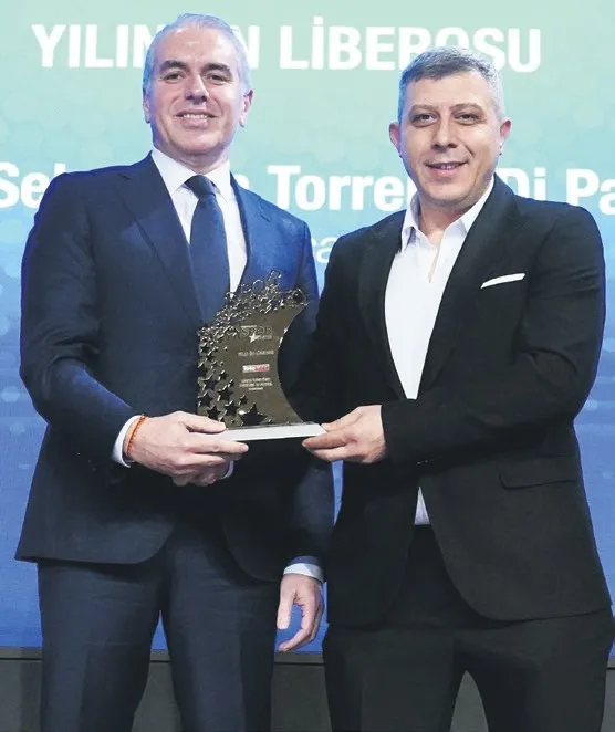 Fotomaç Gazetesi Yazı İşleri Müdürü Mecit Coşkun, Yılın Ön liberosu seçilen Torreira'nın ödülünü G.Saray Genel Sekreteri Eray Yazgan'a verdi.