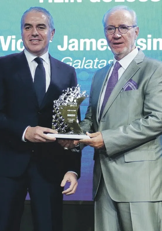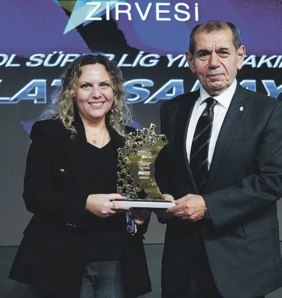 Dursun Özbek, G.Saray'a verilen Trendyol Süper Lig Yılın Takımı ödülünü Trendyol Grup'tan Burcu Yaşar'ın elinden aldı.