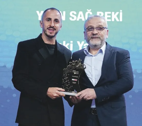 Yılın sağ beki seçilen Samsunsporlu Zeki Yavru'ya ödülünü Turkuvaz Medya Matbaa Genel Müdürü Mehmet Kamiloğlu takdim etti.