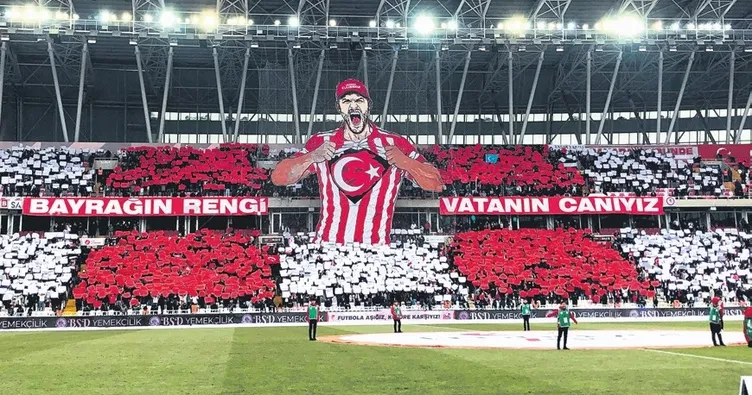 Sivas tribünleri hazırladıkları koreografiyle alkış topladı. Taraftar göğsündeki Türk bayrağını gösterirken, tribünlerdeki pankartlarda ise "Bayrağın rengi, vatanın canıyız" ifadeleri yer aldı.