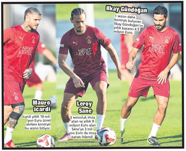 G.Saray'ın sezon başında büyük umutlarla transfer ederek yüksek maaşlar ödediği Sane ve İlkay Gündoğan kulübeye mahkum oldu. Yine takımın en çok kazanan isimlerinden kaptan İcardi de ilk 11'i unuttu. Cimbom, kenardan çıkamayan Alman kanat oyuncusu ile Arjantinli yıldıza (3 yıla bölünen imza parası da dahil edilince) senelik 10'ar milyon Euro ödeme yapıyor. Manchester City kariyerini bırakıp Aslan'ı tercih eden 35 yaşındaki İlkay'ın da kulübe senelik maliyeti 4.5 milyon Euro… Sarı-kırmızılı ekip, yatırım yaptığı ve bir yılda toplam 24.5 milyon Euro (1 milyar 254 milyon TL) ödediği 3 yıldızı kulübede tutuyor.
