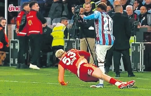 Hakem Cihan Aydın, Trabzonsporlu Augusto'nun Galatasaraylı Torreira'ya faul yaptığı gerekçesiyle düdük çaldı. Bordomavili futbolcular, herhangi bir temas olmadığını belirterek uzun süre itiraz etti.
