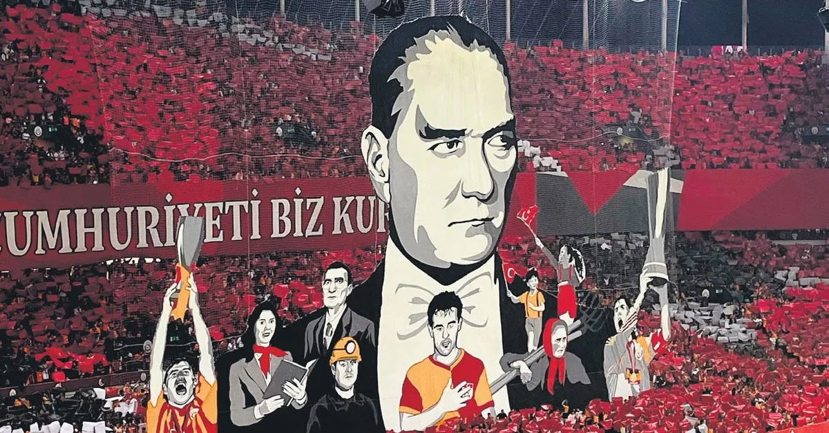 Sarı-kırmızılılar, Cumhuriyetimizin 100. yılı için Rams Park tribünlerinde tüyleri diken diken eden bir koreografiye imza attı. 32 bin boyanmış karton ile hazırlanan gösteri geceye damga vurdu