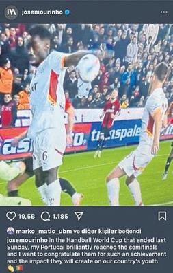 Önce F.Bahçe-Ç.Rize, ardından da G.Antep-G.Saray maçı sonrasında iki takımdan karşılıklı açıklamalar gelirken son düello Jose Mourinho ile İcardi arasında yaşandı. Portekizli teknik adam, sosyal medya hesabından Davinson'un eline topun geldiği anı paylaşıp "Geçtiğimiz Pazar günü sona eren Hentbol Dünya Kupası'nda Portekiz'im mükemmel bir şekilde yarı finale yükseldi ve onları bu başarılarından ve ülkemiz gençliği üzerinde yaratacakları etkiden dolayı kutlamak istiyorum" mesajını paylaştı.