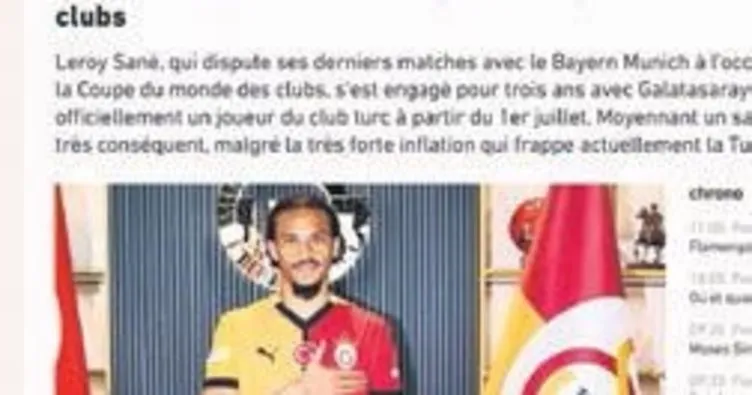 LEROY Sane'nin G.Saray'a imzası Avrupa basınında büyük yankı bulurken Fransızların ünlü spor gazetesi L'Equipe, transferin perde arkasını araştırdı. Haziran ayında bu transferin bitmesinin altı çizilen haberde iki detay dikkat çekti. G.Saray'da görev yapan kaynakların da görüşüne başvurulan haberde Osimhen'in bu sezon gösterdiği performansın da bu transferde payı olduğuna değinilirken G.Saray'ın mali olarak gayrimenkul projelerinden elde ettiği gelirin, yıldız oyuncunun gelişinin önünü açtığı vurgulandı.