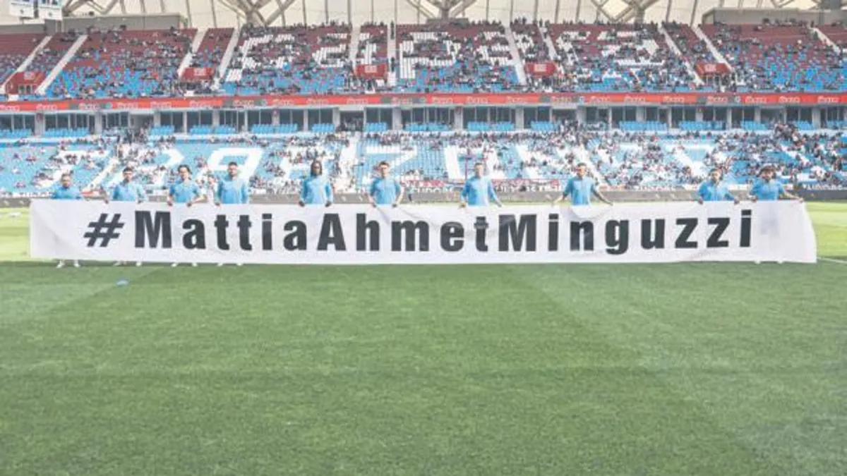 Trabzonsporlu oyuncular ısınmak için sahaya İstanbul'da bir saldırı sonucu hayatını kaybeden bordomavili takımın taraftarı 14 yaşındaki Mattia Ahmet Minguzzi'nin adının yazılı olduğu pankart ile çıktı. Ayrıca Minguzzi'nin isminin yazılı olduğu forma da imzalanarak ailesine takdim edildi.