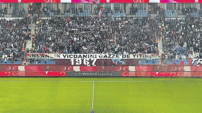Trabzonspor taraftarları stadyumda, "İnsanlık vicdanını Gazze'de yitirdi" yazılı pankart açarak, İsrail'in yaptığı vahşete tepki gösterdi. Ayrıca "Kahrolsun İsrail" sloganları atıldı.