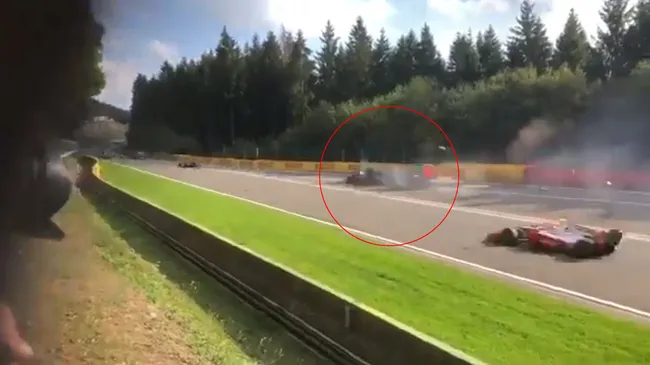 Anthoine Hubert'in kullandığı (soldaki) araç bariyerlere çarptıktan sonra savrulurken Juan Manuel Correa'nın kullandığı araç (sağdaki) 250 kilometre hızla Hubert'in aracına çarptı.