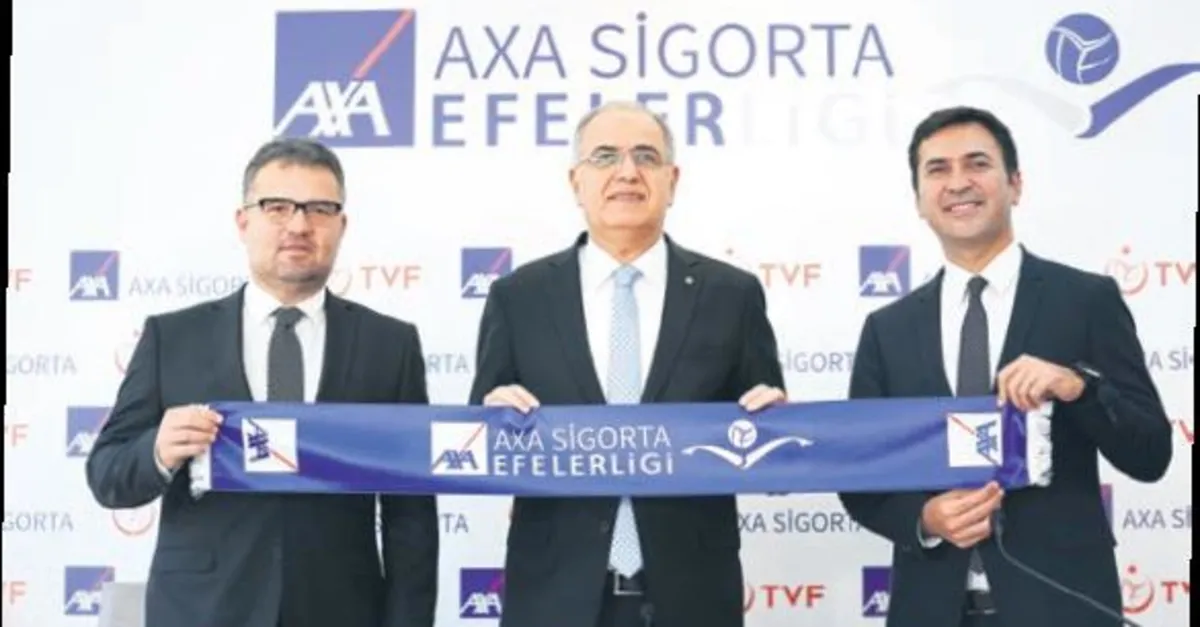 TÜRKİYE Voleybol Federasyonu ile geçen seneden beri birçok sponsorluk anlaşması yapan AXA Sigorta son olarak 2 sezon için Efeler Ligi'nin isim sponsoru da oldu. AXA Sigorta Genel Müdürlüğü Binası'nda gerçekleştirilen imza törenine, TVF Başkanı Mehmet Akif Üstündağ, AXA Sigorta CEO'su Yavuz Ölken, AXA Sigorta Satış ve Pazarlama Genel Müdür Yardımcısı ve icra kurulu üyesi Firuzan İşcan katıldı. AXA Sigorta Üst Yöneticisi Yavuz Ölken, Kupa Volley'in de isim sponsoru olduklarını hatırlatarak,