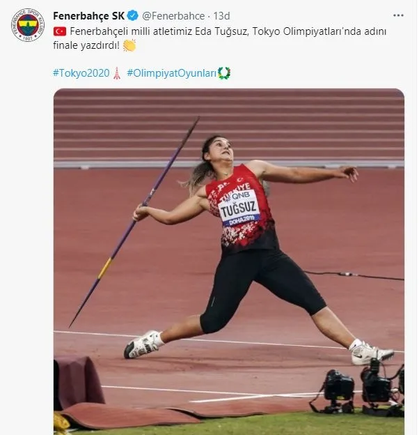 'Fenerbahçeli milli atletimiz Eda Tuğsuz, ilk olimpiyatında finale kalmış oldu.