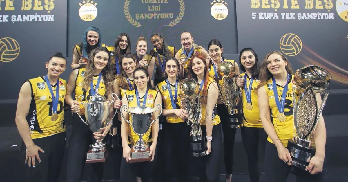 VAKIFBANK Kadın Voleybol Takımı dün Türkiye'ye dönerken bu sezon kazanılan 5 kupa ile birlikte gövde gösterisi yaptı. Başantrenör