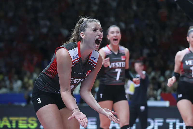 Elde ettiği oyun üstünlüğü ve moralle 3. sete başlayan milli takım, kaptan Eda Erdem ve Ebrar Karakurt ile etkili oldu, teknik molaya 12-8 önde girdi. Basit hatalar yapan mili takım karşısında Balçika 19-19'da eşitliği sağladı ve Guidetti, skor 19-21'de mola aldı. Moladan Zehra Güneş'in smaç ve bloklardan üst üste bulduğu 4 sayıyla 23-21 öne geçen ay-yıldızlılar, seti de 25-21 kazandı.