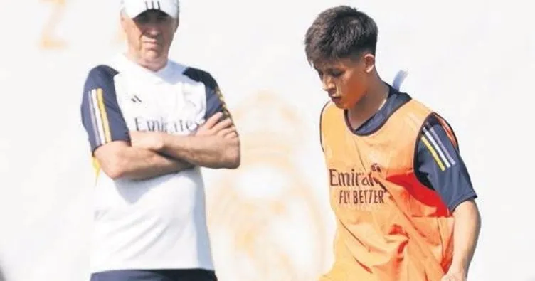 DÜNYA futbol kamuoyunun merakla beklediği buluşma gerçekleşti. Fenerbahçe'den 20 milyon Euro bonservis+10 milyon Euro bonuslar karşılığında Real Madrid'e transfer olan Arda Güler, yeni takımındaki ilk antrenmanına çıktı. Önceki gün İspanyol kulübünün yeni transferlerinden