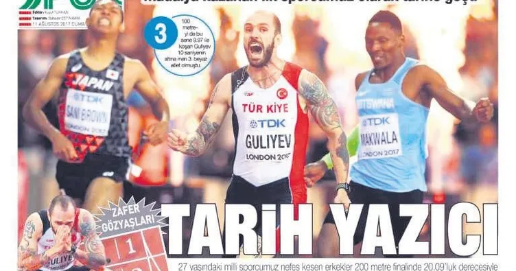 İngiltere'nin başkenti Londra'nın 2017'de ev sahipliği yaptığı organizasyonda tarihler 11 Ağustos'u gösterdiğinde beklenen büyük final gelmişti. Milli atletimiz Ramil Guliyev, erkekler 200 metre yarışında birinci olarak Türkiye'ye Dünya Atletizm Şampiyonası tarihindeki ilk altın madalyasını kazandırdı.