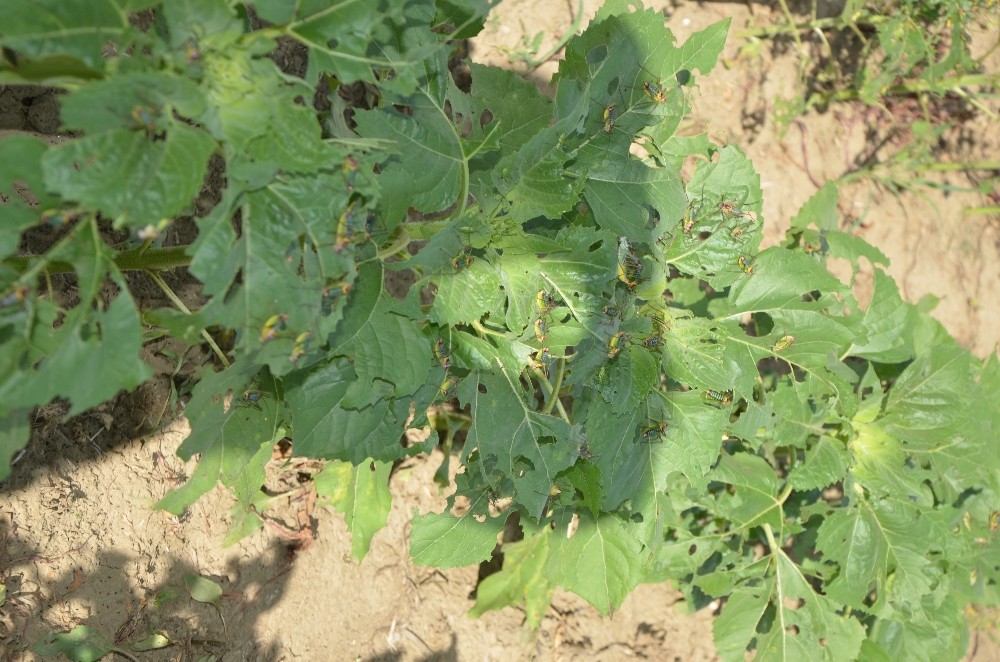 Tekirdağ’da bir çiftçinin ay çiçek tarlasını istila eden çekirgeler, mahsule zarar verdi.