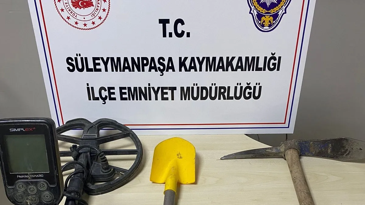 Tekirdağ'ın Süleymanpaşa İlçe Emniyet Müdürlüğü Devriye Ekipler Amirliği ekiplerinin, Süleymanpaşa ilçesi Hürriyet Mahallesinde araç ve sürücüsü F.C. şahıs üzerinde yapılan aramada, 44 adet farklı boyutlarda sikke, takı vb, tarihi eser, 1 adet kürek, 1 adet kazma, 1 adet metal el detektörü ele geçirildi. Konu ile ilgili F.C. hakkında kaçak kazı ve Kültür ve Tabiat Varlıklarını Koruma kanuna muhalefetten yasal işlem başlatıldı.