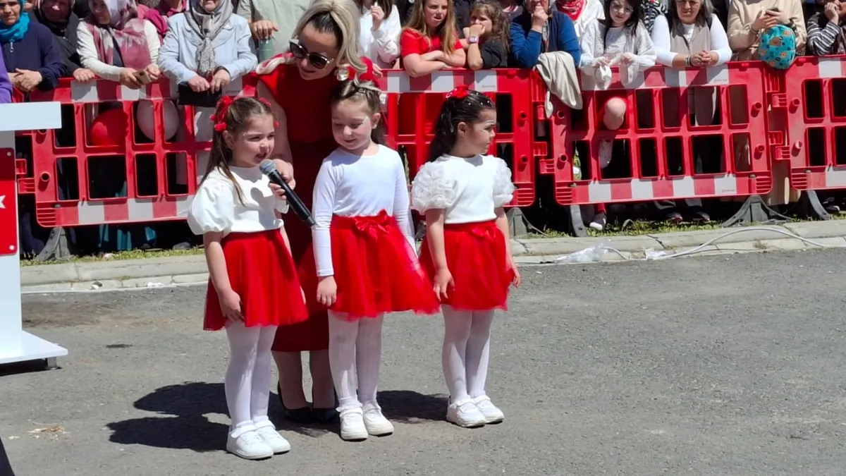 Salonun boşaltılması üzerine, dışarıda oluşturulan alanda, minikler gösterilerini sergilediler.Gösteri esnasında deprem nedeniyle bazı çocuklar ağlarken, bazıları da gösteri hareketlerini unutunca, öğretmenleri kenardan hareketlerle yönlendirdi.Her şeye rağmen 23 Nisan etkinlikleri başarıyla tamamlanırken,birçok velinin deprem endişesi gözlerinden okunuyordu.
