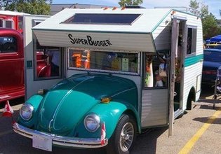 Bir döneme damgasını vurmuş Volkswagen'in efsanevi modeli Beetle hayranları tarafından karavana dönüştürülmüş durumda. Volksagen minibüsün ufak bir modeli gibi görünen bu haliyle de kendine hayran bırakıyor.