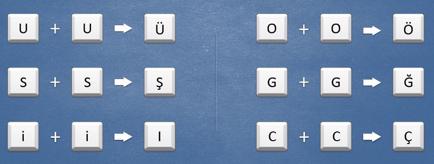 Örneğin U harfine iki kere basıldığında Ü, S harfine iki kere basıldığında Ş harfi yazılabiliyor.