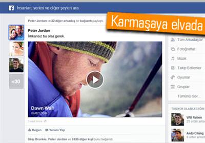 Facebook'un az önce başlayan etkinliği ile birlikte merakla beklenen yeni Haber Akışı (News Feed) duyuruldu. Kullanıcının beğenisine sunulan yeni haber akışının eskine göre bir hayli farklı olduğu görülüyor. Mark Zuckerberg'in bizzat tanıttığı yeni Haber Akışı 'Karmaşaya Elveda' başlığıyla duyuruldu.