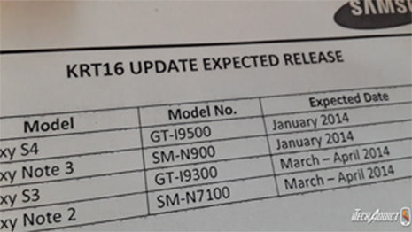 Sızdırılan görsele baktığımızda, S3, S4, Note 2 ve Note 3'ün ne zaman Android 4.4'e güncelleneceği ortaya çıkıyor. Galaxy Note 3 ve S4, Ocak ayında Android 4.4 güncellemesine kavuşmuş olacak. Note 2 ve S3 içinse söz konusu güncelleme Mart- Nisan 2014 tarihinde gerçekleşecek.