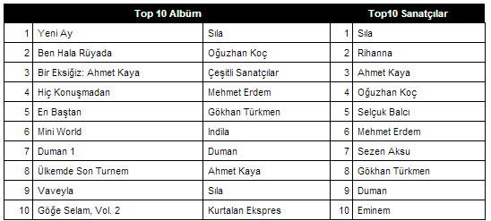 Dünyada 180'den fazla ülkede müziğe tüm cihazlardan sınırsız erişim sunan dijital müzik platformu Deezer'da Mayıs ayı boyunca Türkiye'de müzik severlerin en çok dinlediği albüm; Sıla'nın "Yeni Ay" isimli son çalışması olurken Mayıs ayının en çok dinlenen şarkısı ise yine Sıla'dan "Yabancı" oldu. Mayıs ayında Deezer'ın en çok dinlenen sanatçılar listesinde ise Sıla'yı Rihanna takip etti. Bu iki sanatçının en çok dinlenildiği şehirlerde ise İstanbul'u sırasıyla Ankara, İzmir, Antalya ve Bursa takip etti. Karadeniz'in sevilen sesi Selçuk Balcı ilk 10 içerisindeki konumunu yükseltirken listeye bu ay yeni giriş yapan isimse rap müziğin dünyaca ünlü yıldızı Eminem oldu.