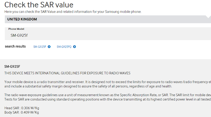 Samsung yanlışlıkla Galaxy S6 Edge'in SAR değerini yayınladı