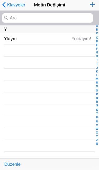 -İlk olarak Ayarlar>Genel>Klavye> Metin değişimi kısmına tıklayın.