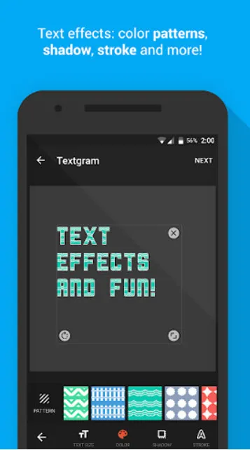 Textgram uygulamasının asıl kullanım amacı; davet, duyuru vb. amaçlarla hazırlanan görsellerin sıfırdan resimli tasarım şablonları ile hazırlanmasını sağlamak. Uygulamada 50'nin üzerinde ücretsiz arka plan, yaklaşık 30 tane profesyonel yazı tipi bulunuyor.