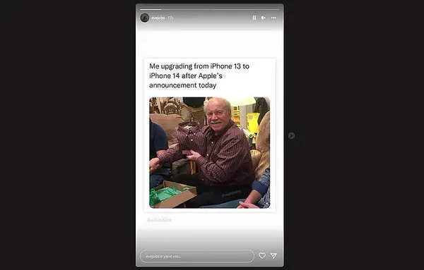Geçen yıl Eylül ayında akıllı telefonun duyurulmasının ardından, Apple, öncüsü iPhone 13'ten kozmetik olarak "çok da farklı olmaması" nedeniyle eleştirilere maruz kaldı. Instagram hikayelerinde, Eve Jobs, bir adamın giydiğiyle aynı gömleği satın aldığı bir mizah görseli paylaşıp altına şu cümleleri eklemişti: "Bugünkü Apple duyurusundan sonra iPhone 13'ten iPhone 14'e yükselen ben."