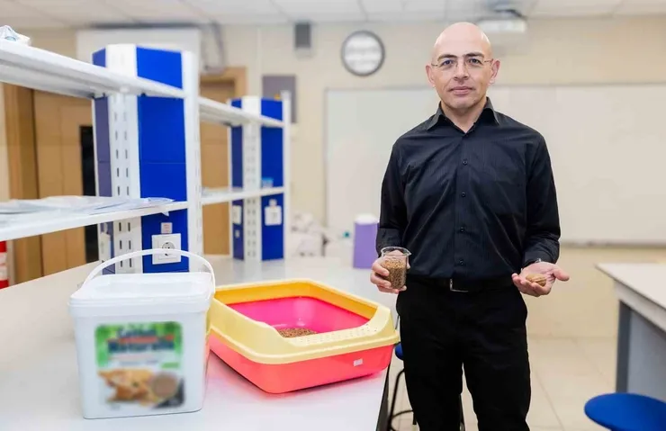 Yaşar Üniversitesi Makine Mühendisliği Bölümü Dr. Öğretim Üyesi Hüseyin Gökmen Aksoy'un hayvan sevgisiyle başlayan akademik araştırması, sağlık ve çevre odaklı yenilikçi bir ürüne dönüştü. Aksoy'un yürüttüğü çalışma sonucunda, ceviz kabuğundan üretilen doğal ve zararsız kedi kumu geliştirildi.