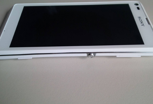 Cihazın sol tarafında ise sadece veri alışverişini ve şarj bağlantısının yapıldığı micro USB girişi ve onun biraz üstünde ise telefonun arka kapağını açmamız için ufak bir girintinin yer aldığını belirtelim. Xperia L'nin üst kısmında ise bir tek 3.5 mm'lik kulaklık girişi yer almakta. Son olarak cihazın ön ve arka kısmından bahsedelim. Cihazın ön kısmı çizilmeye karşı dayanıklı bir camdan yapılmış. Dokunduğunuzda size bir güven hissi veren bu camın büyük bir kısmını ise Xperia L'nin oldukça ideal ölçülerde olan 4.3 inç büyüklüğündeki ve 480 x 854 piksel çözünürlüğündeki ekranı kaplıyor. Bunun yanında cihazın ön tarafında bir de VGA kamera yer almakta. Son olarak arka tarafta ise üst kısımda cihazın 8 MP çözünürlüğündeki kamerası göze çarpıyor. Bu kameranın hemen yanında ise geceleri kaliteli fotoğraflar çekmemize yardımcı olacak flaş ışığı yer alıyor. Cihazın arka kısmında ayrıca makul büyüklükte Xperia logosu ve hoparlör yer alıyor.