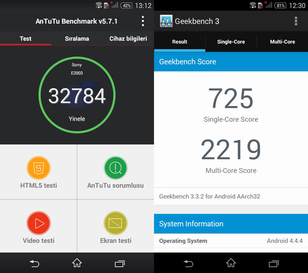Xperia E4g'te MediaTek'in 1.5 GHz'lik 4 çekirdekli MT6732 işlemcisi var. Bu yongasetine ise ARM Mali-T760MP2 GPU'su eşlik ediyor. Grafik işlemcisi iyi bir kategoride. Giriş segmenti bir cihaz olarak günlük kullanımda sevdim. Telefon klasik rutin işlemleri gayet performanslı şekilde yapabiliyor.