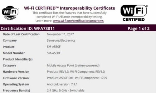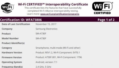 WiFi Alliance tarafından yeni nesil Galaxy A5 (SM-A530F) ve Galaxy A7 (SM-A730F) listelendi. Yani telefonların ikisi de yetkili merciden gerekli sertifikayı kaptı. WiFi Alliance, donanımsal özelliklerin detayını vermez, ama listeye göz atarsak her iki cihazda Android 7.1.1 Nougat işletim sisteminin yüklü olduğunu görüyoruz.