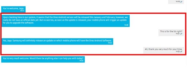 Reddit'te bir kullanıcı Samsung temsilcisiyle yaptığı görüşmenin ekran görüntülerini paylaştı. Samsung temsilcisinin verdiği cevaba göre, üç yaşına giren Galaxy S6 için Android 8.0 Oreo güncellemesi çıkacak görünüyor. Ayrıca verilen cevaba bakarsak güncellemenin çıkış tarihi ocak veya şubat olabilir. Tabii ki kesin bir tarih verilmemiş.