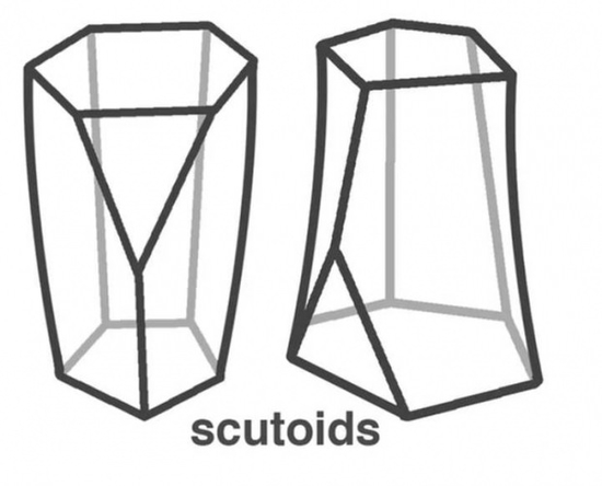 Bilgisayar modellemesi yapan bilim adamları, epitelyal hücrelerin organların kıvrılma yerlerini oluşturmak üzere bir araya geldiklerinde, daha önce matematikçiler tarafından tanımlanmamış bir şekle büründüklerini görmüşler. Hafif eğimli iki kenarı olan ve bir köşesi kesilmiş prizma gibi görünen bu şekle bilim adamları, scutellum olarak adlandırılan bir böceğin üçgen şeklindeki toraksından esinlenerek "scutoid" adını vermişler.