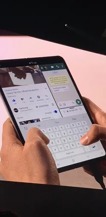 Dahili ekran sadece bükülmekle kalmıyor, katlanıyor. Daha sezgisel bir hareket olan katlama, başarılması zor bir inovasyona imza atıyor. Samsung, bu inovasyonu hayata geçirmek için yeni bir polimer katmanı icat etti ve ince bir ekran yarattı. Yeni malzeme, Galaxy Fold'un esnek ve dayanıklı olmasına, uzun süre kullanılabilmesine imkan veriyor.