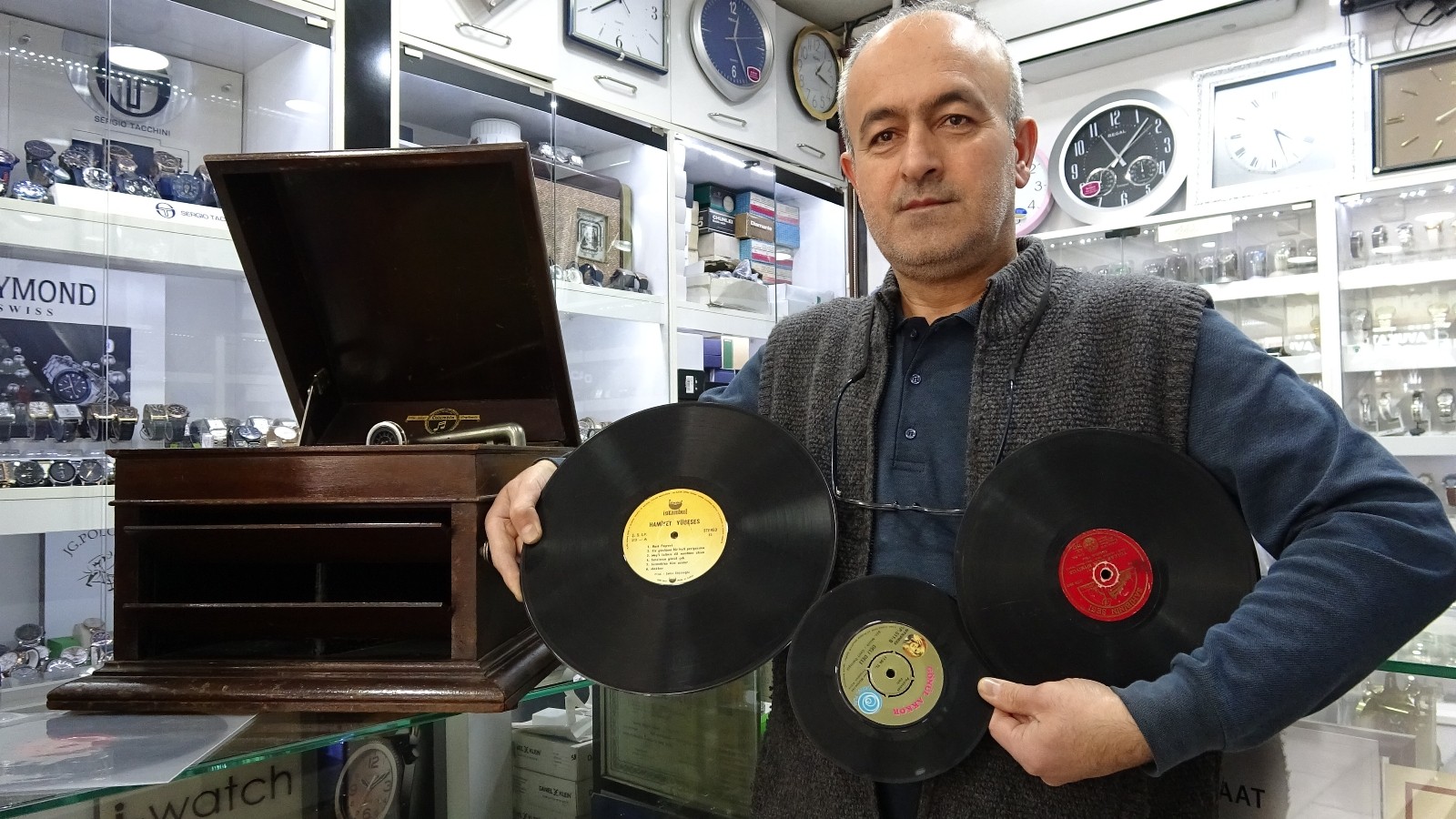 Tokat’ta evli ve 2 çocuk babası Enver Bozpınar (52) hobisi ile dikkatleri çekiyor. Ortaokulu bırakarak çalışmaya başlayan Bozpınar, yaklaşık 40 yıldır baba mesleği saatçilik yapıyor. Gençlik yıllarında bakır eşyalar toplayarak başladığı antika merakına taş plak ve gramofonla devam eden Bozpınar’ın uzun yıllar devam ettirdiği tutkusu koleksiyona dönüştü. 4 binin üzerinde plak ile 60’a yakın gramofonu bulunan Bozpınar, koleksiyonunu ‘anılar’ ismini vereceği bir kahve açarak sergilemeyi hayal ediyor. İş yerinde 1960-1970’li yılların parçalarını taş plaktan dinleyerek çalışan Bozpınar, günün stresini atıyor. İş yerine plak dinlemeye gelenleri de kırmayan Bozpınar, nostalji yaşatıyor.