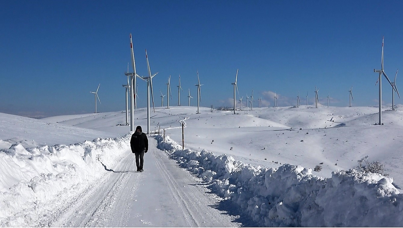 Türkiye’de en yüksek rakımlı rüzgar santrallerinden birisi olan Tokat RES’te kar yağışı ile birlikte oluşan manzara havadan görüntülendi.