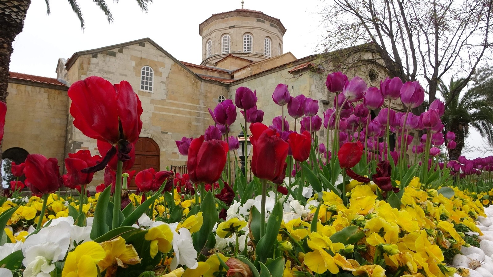 Trabzon’daki Ayasofya Camii laleler ile bir başka güzel