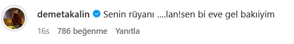 Kurt'un gönderisine ise eşi Demet Akalın'dan esprili bir karşılık gelince, çiftin aralarındaki şakacı ilişki bir kez daha gözler önüne serilmiş oldu. Ünlü şarkıcı eşinin gönderisine, Senin rüyanı *** Lan sen bir eve gel bakalım!" yorumunu yapmıştı. Akalın'ın bu çıkışı kısa sürede ses getirmişti.