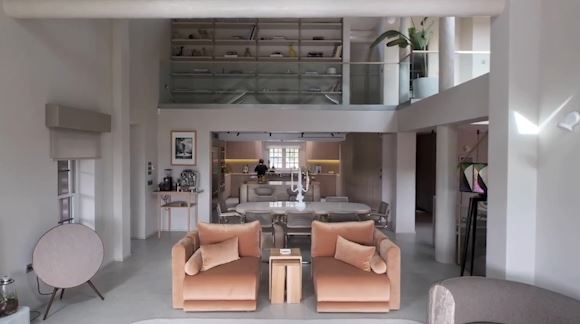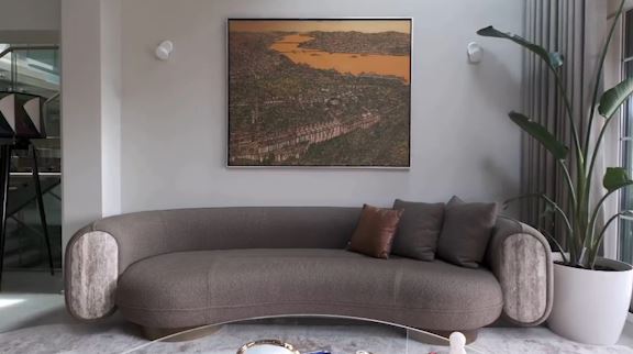 Bir moda dergisi çekimini andıran ev, özel üretim oturma grupları ve titizlikle seçilen mobilyaları sayesinde dikkat çekici ve özgün bir ambiyans kazandı.